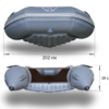Лодка способна взять на борт пять человек и снаряжение. Дно лодки полностью надувное цельное, состоящее из абсолютно плоской палубы и умеренно килевого дна. Конструкция имеет достаточную жёсткость для того, чтобы устойчиво стоять на палубе и иметь твердое днище необходимое для лучших характеристик при движении.