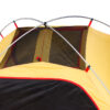 Два входа во внутреннюю палатку закрываются как тканевым пологом, так и москитной сеткой для вентиляции в жаркую погоду. Чтобы в критический момент не перепутать молнии выхода и москитной сетки, они имеют различный цвет: красная молния открывает выход, а черная — москитную сетку. Молнии крупные, 8-го размера. На замках молнии удобные петельки оранжевого и черного цвета. Открытые пологи входа можно свернуть и зафиксировать баклей. При полностью закрытом входе внутренняя палатка надежно защищает от пауков, комаров, змей и даже муравьев. Старайтесь держать внутреннюю палатку всегда закрытой.