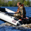 Долгожданная Новинка от лодок ХАНТЕР – легкая безкилевая лодка ПВХ со стационарным надувным дном низкого давления Хантер 335 А Лайт . Вес надувной лодки без навесного оборудования всего 25 кг., при этом все швы усилены специальной ПВХ лентой черного цвета, а в кормовой части надувного дна установлен ИНТЕРЦЕПТОР. Лодка оптимальна для использования с моторами малой мощности. Ни каких переменных диаметров баллона, в лодке Хантер 335 А лайт диаметр баллона составляет 46 см. и не меняется по всей длине надувной лодки. Благодаря прямым обводам и внушительному диаметру баллона лодка получила просторный и объемный кокпит. А умеренная цена и пятилетняя гарантия на лодку, не оставит равнодушным к новинке, даже самого искушенного рыбака.